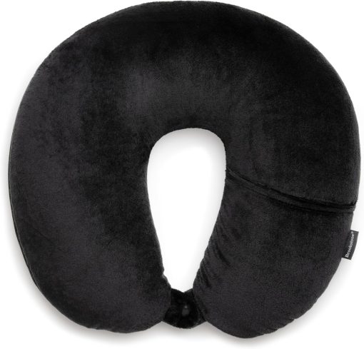Brookstone Microbead Travel Head and Neck Pillow Lightweight and Plush with Phone or Headphone Pocket, Black