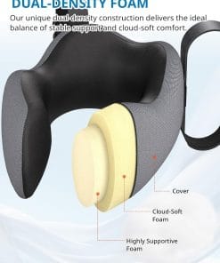 The two-layer design of the SARISUN Neck Pillow combines a firm inner layer of highly supportive foam for stable support with a cloud-soft outer layer for instant softness. The travel pillow gently hugs and supports your neck, without sinking or pressing on your chin and ears. Gives 100% real neck and head support to relieve muscle tension and fatigue from long flights, road trips, or extended office hours.