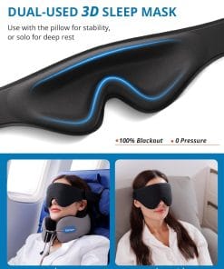SARISUN Neck Pillow Airplane,Travel Pillow with Strap,Combo 3D Eye Mask for Sleep,Dual-Density Supportive Foam Travel Neck Pillow for Airplane Flights,Car Road Trip Travel Essentials Black