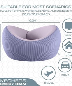Skechers Women’s Memory Foam Neck Pillow, Comfortable & Breathable Travel Pillow,Neck Pillow Airplane for Travel, Car Rides, Home, and Office Use, Ergonomic Design for Men and Women,Purple