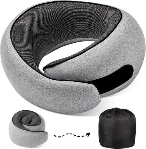 Travel Neck Pillows, 100% Memory Foam Filling, Travel Pillows for Airplanes, Compact and Ergonomic Design, Best for Sleeping Plane Train Travel Essentials (Light Grey)